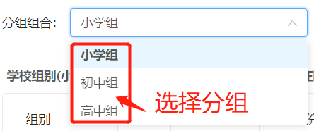 1、选择比赛分组,并填写学校、领队、教练的信息